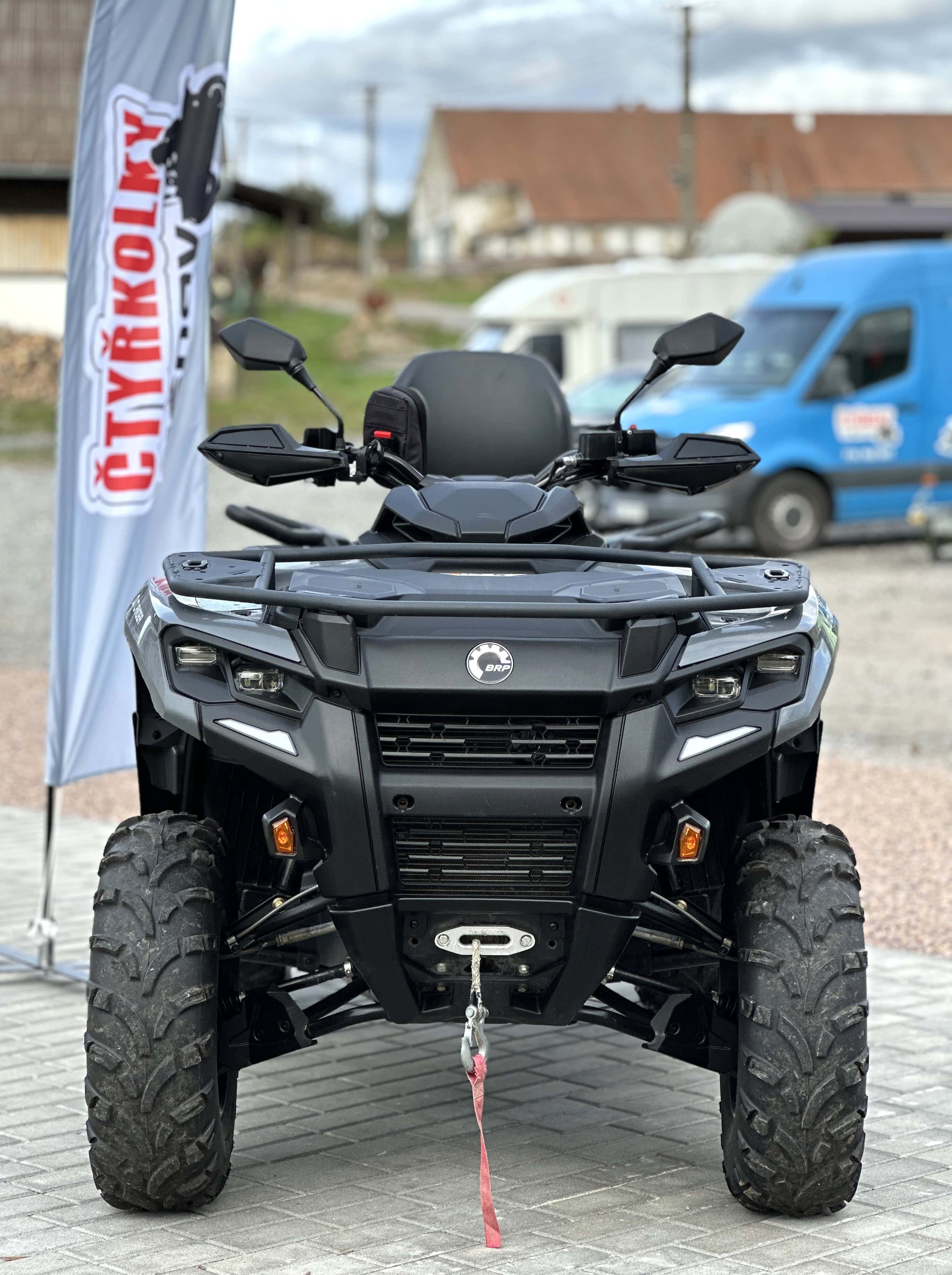 Dlouhý Outlander G3L s jednoválcem Rotax 650 ccm DOHC, nová řada s originální koncepcí variátoru, která se už osvědčila v UTV, s homologací T3b (2 místa, 105 Km, bez přílby). Tato čtyřkolka přináší úplně nové konstrukční prvky a posouvá své vlastnosti opět na nejvyšší úroveň, na kterou ještě čínští výrobci ani nepomysleli, natož aby se je pokusili okopírovat. Rám stroje je postaven na vysokou torzní pevnost při nízké hmotnosti, motor má výkon nasměrován více do spodního spektra otáček, to vše je vítané zejména při tahání nákladů, přičemž čtyřkolka má na tažném bezkonkurenčních 395/830 Kg. Tento stroj je tedy opravdu využitelný na práci, ale užijete si s ním i na výletech. Oproti verzi HD7 má nastavený na ECU nižší výkon (což se dá určitě změnit), jinak se jedná o shodný stroj.
