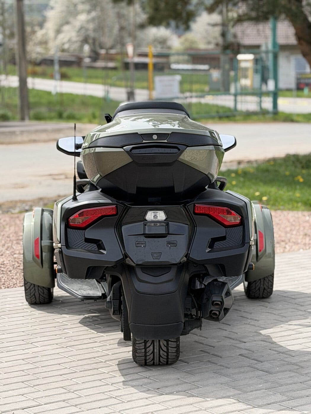 Nejvyšší řada luxusní cestovní tříkolky (vyšší jak LTD) s tříválcem Rotax 1330 ccm -115 HP, najeto 28.500 Km (servisní knížka), stavitelný štít, vyhřívané sedadla a rukojeti včetně spolujezdce, vestavěné rádio, aplikace BRP GO! umožňující streamování navigace na palubní desce, možnost propojení s telefonem i přílbou s BT, ABS a další asistenční systémy jako SCS, TCS a HHC. Poloautomatická šestistupňová převodovka se zpátečkou řazená pádýlkem s možností automatického odřazování, vzduchový podvozek s automatickým dofukováním (zadní vidlice), řízení s posilovačem, ostré brzdy Brembo, přední plynokapalinové nastavitelné tlumiče M-Shock, příznivá spotřeba paliva (režim Eco) – to vše má za následek velmi příjemný zážitek z jízdy, který vás svádí k zdolávání velkých dálek. A přesně k tomuto účelu byl Spyder RT stvořen! V předním úložném boxu naleznete vloženou cestovní tašku a velký objem bočních boxů, včetně odnímatelného zadního vás nadchne!